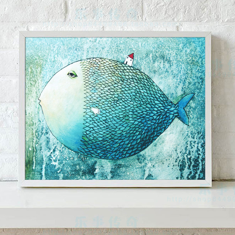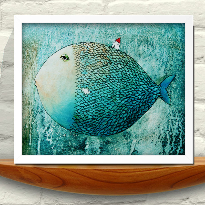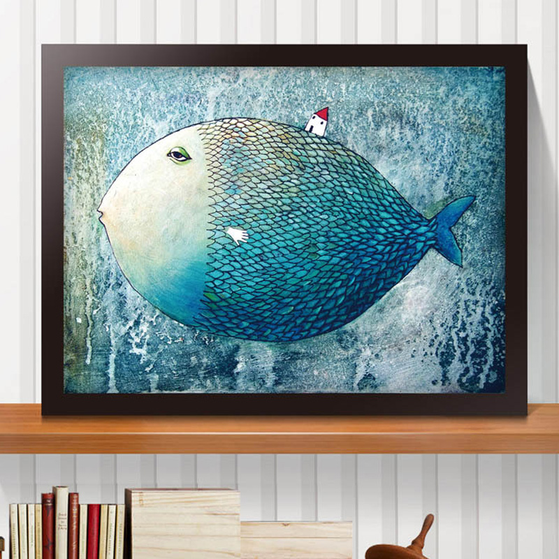 名称:大鱼小房子简约装饰画框 材质:松木实木画芯材质:布艺画芯画框尺寸: